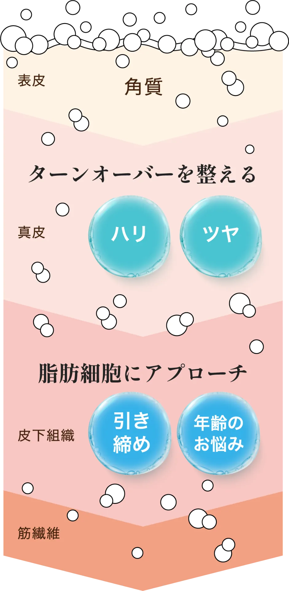 炭酸パックは肌の表皮上部 (角質層) にのみのアプローチになります。