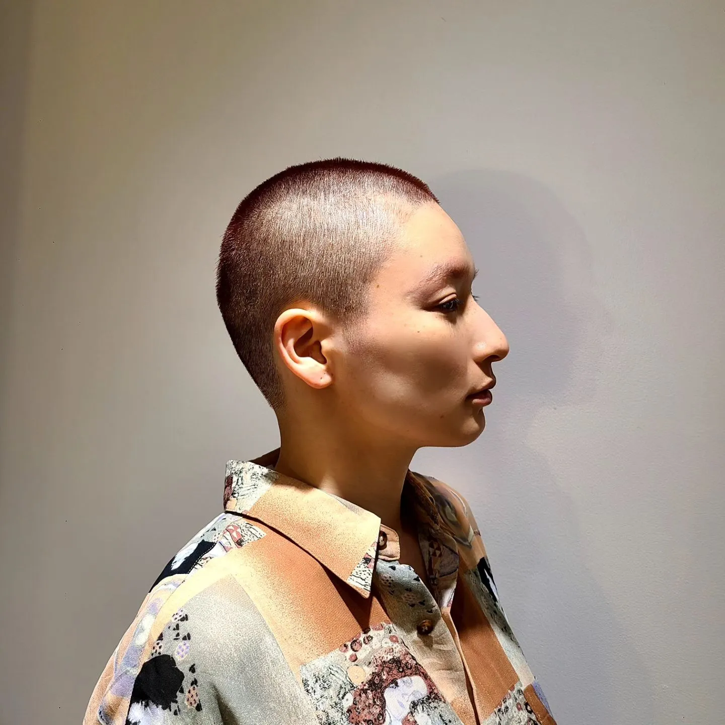 バズカット ~gender-neutral ver.~ バズカット~gender-neutralver.~1、2枚目➡️after3、4枚目➡️beforeバズカットにした際に起こりうる毛密度からのコントラストのムラや、無骨な固いイメージをマゼンダ系カラーで柔らかく華やかに中和した…